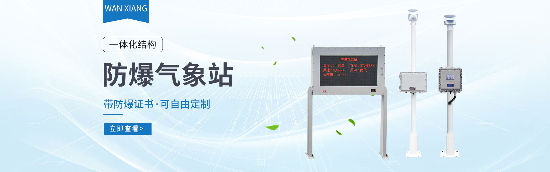 山東萬象環境科技有限公司官網主要產品有防爆氣象站,校園氣象站,農業氣象站,負氧離子監測站,超聲波氣象站,歡迎咨詢15610293837!